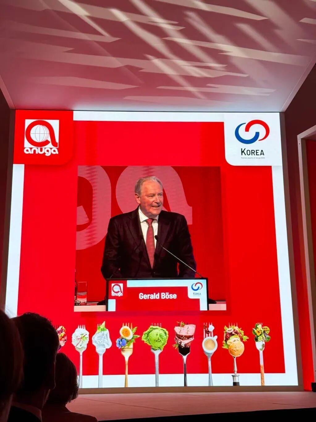 在开幕式之前,向科隆展览公司总裁兼首席执行官Gerald Böse,科隆展览公司首席运营官Oliver Frese, 科隆展览公司副总裁Denis Steker等祝贺2025德国科隆食品展成为史上最大食品展,并就中国食品土畜进出口商会与科隆展览公司深化合作进行了交流。